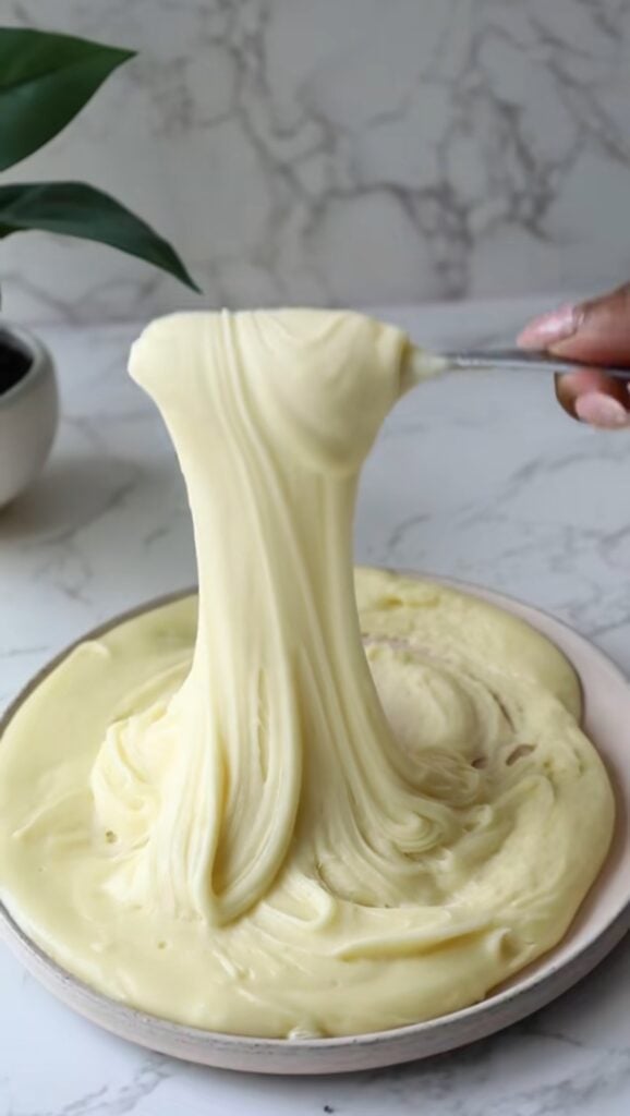 If your mixture seems too thick and sticky instead of elastic, add 1–2 tablespoons of cream to loosen it until it forms glossy strands.